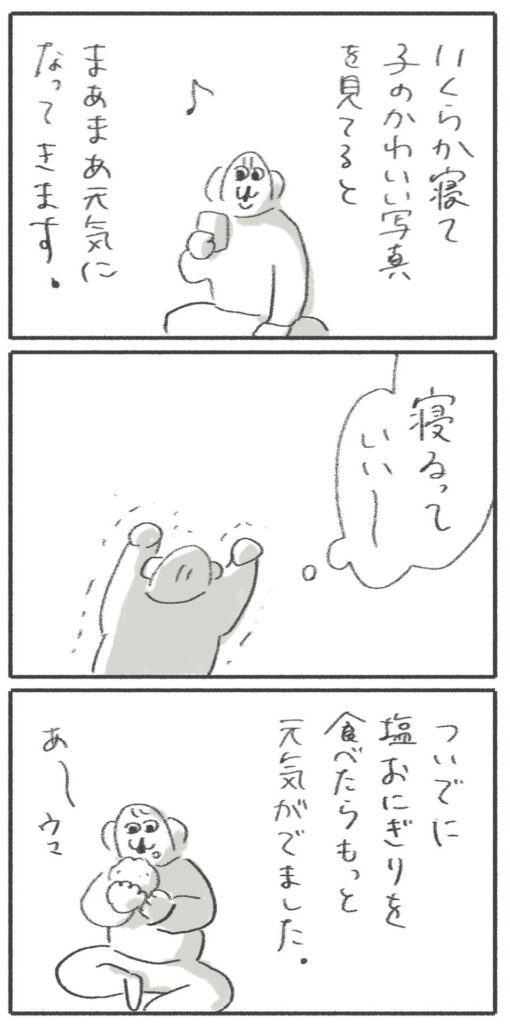 心も体も虚無な時は、寝て、子の写真見て、美味しい塩使ったおにぎり食べるのがベストです。