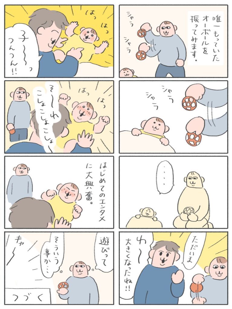 子の起きてる時間が少し伸びて、無言で見つめ合ってる時間が出来始め、「お、これは遊んでやらないけんぞ・・・」と思い始めた頃でした。