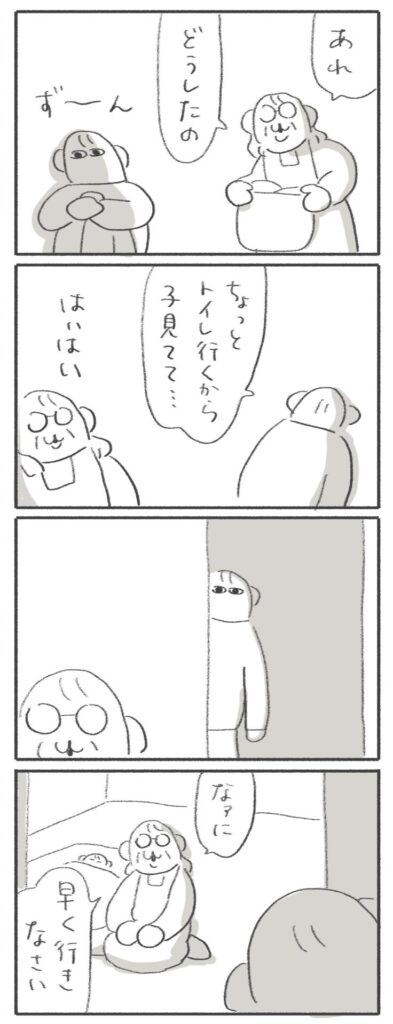 この日はじめて母や父や夫に子の監視を頼まず、トイレに行きました。