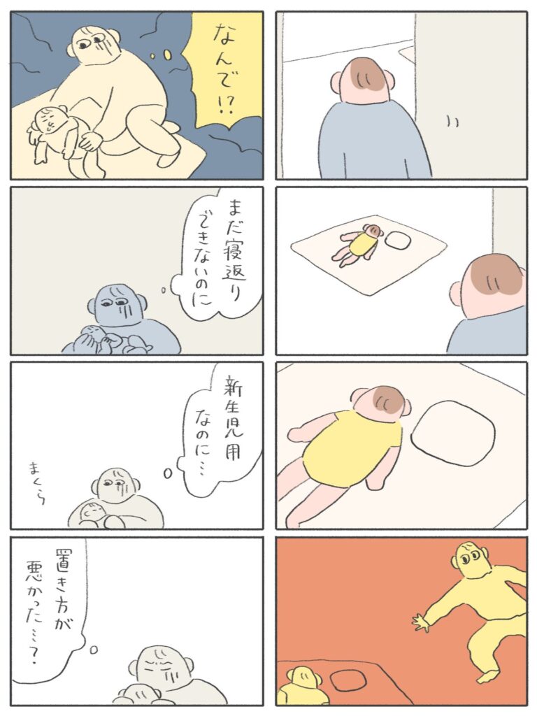 帰ってきて見たら、子がベビー枕から落ちていて少しうつ伏せ気味。それを見て私もう冷や汗と悪寒のオンパレード。